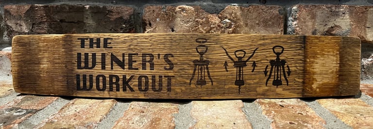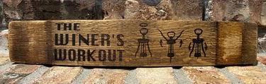 Shelf sitters made from wine and whiskey barrel staves - These can be made using the wording of your choosing.