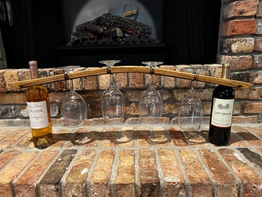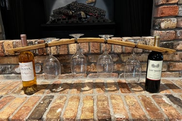 Simple wine glass rack that sits over two bottles