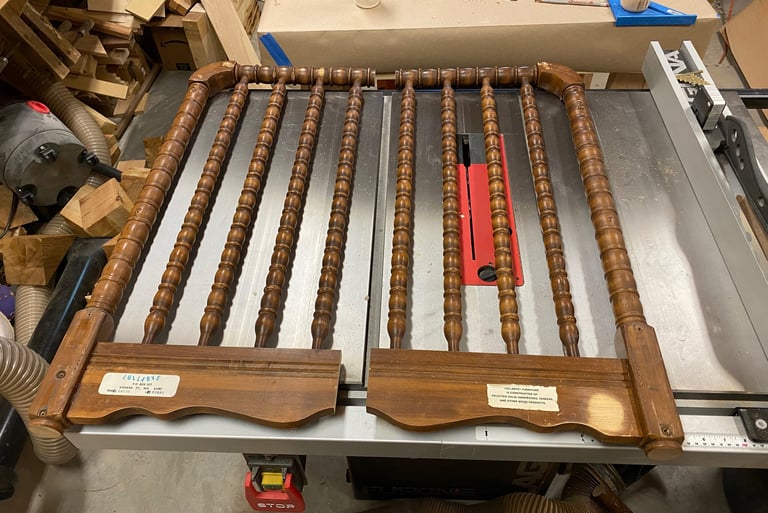 Here are the crib parts as I received them from the customer. All hardware was removed and the brainstorming began.