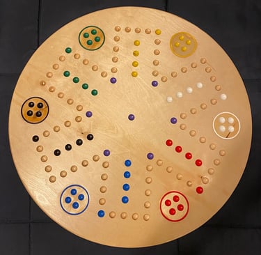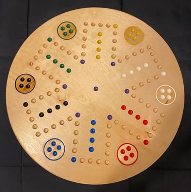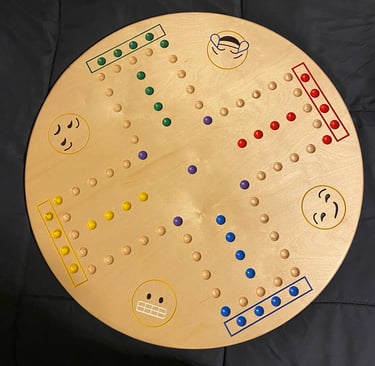 Wahoo/Aggrivation is a fun and competitive marble game. I typically make a two sided board to accommodate 4 players or 6 players. Each board is made from Baltic birch plywood for stability. The pictured version has emoji decorations but I can customize these to your liking.