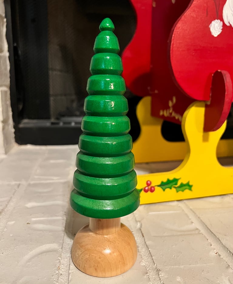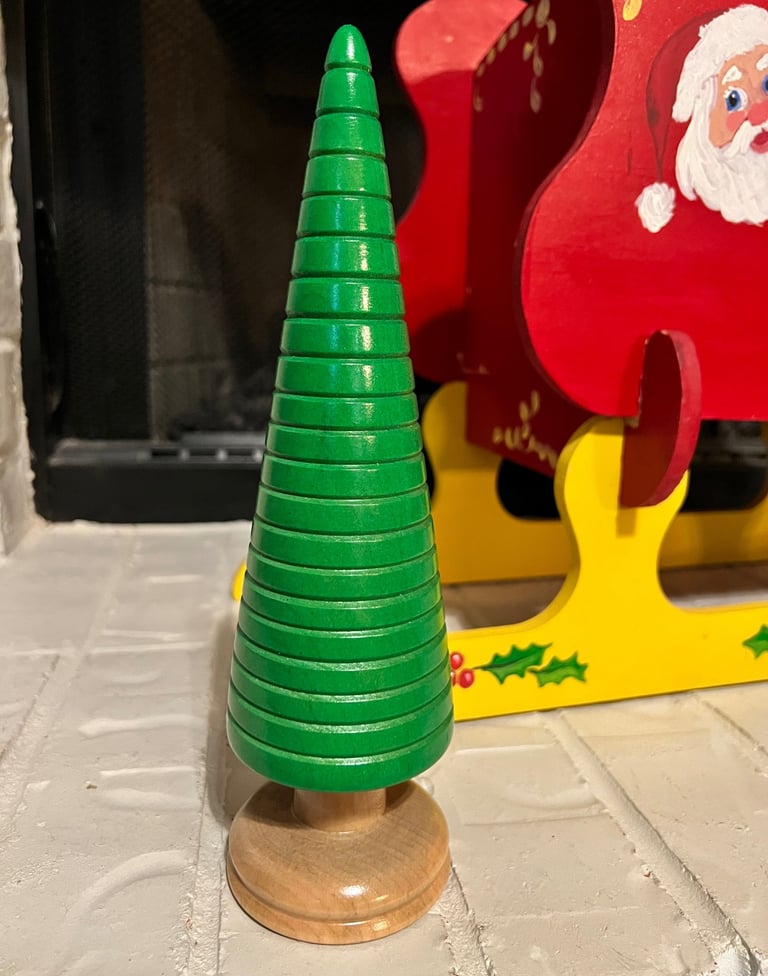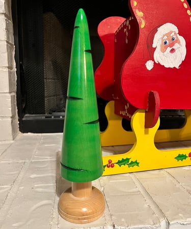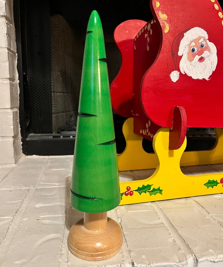 Turned Maple Christmas Tree - Airbrushed green so wood grain shows through.
