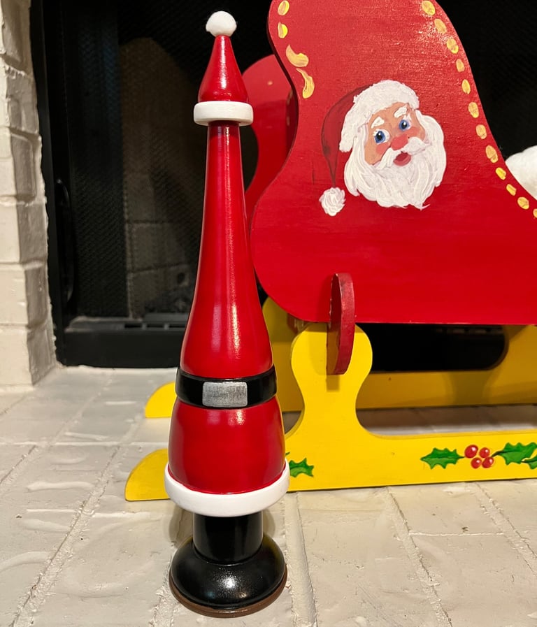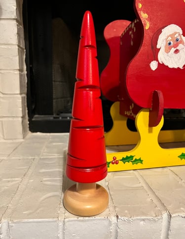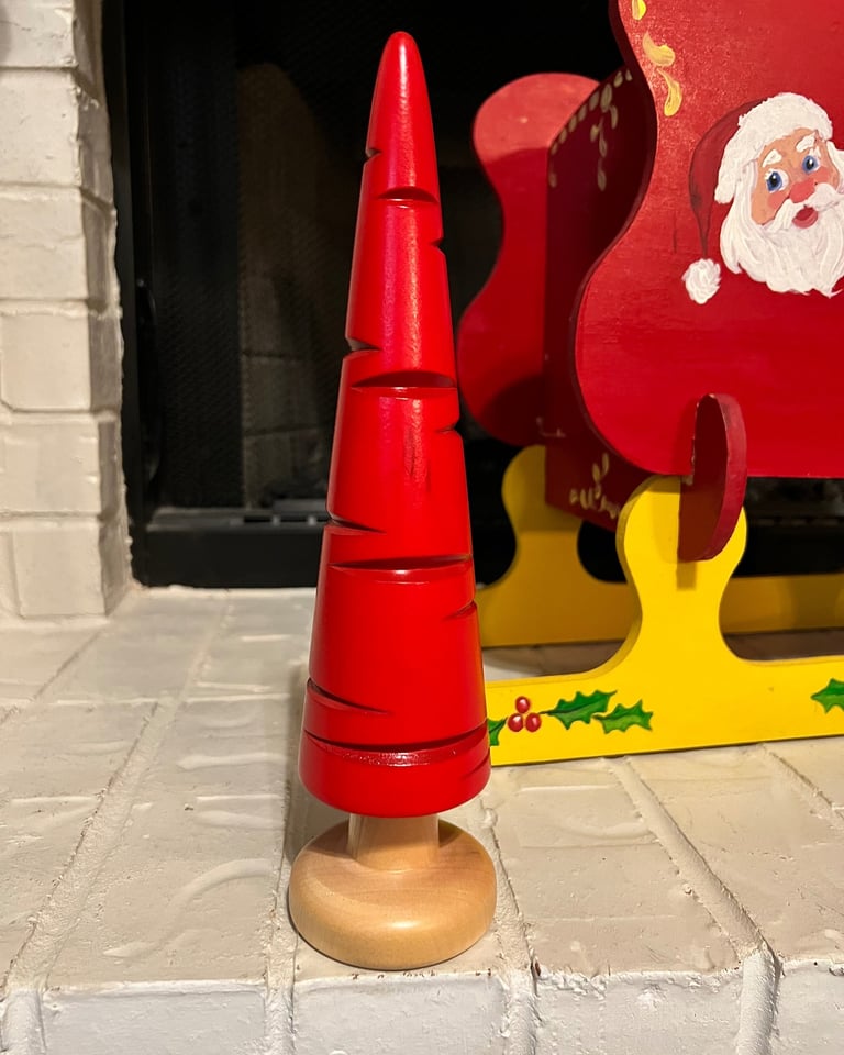 Turned Maple Christmas Tree - Airbrushed red so wood grain shows through.